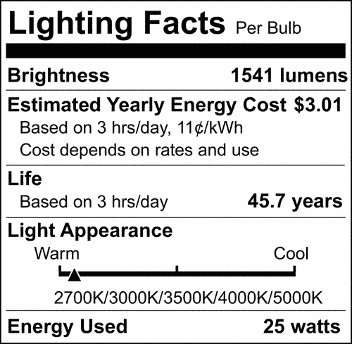 | Lumen Output | 1541L/1608L/1694L/1716L/1701L |